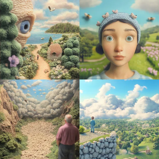 Этот стиль — яркий, причудливый и чарующе сюрреалистичный. Он очаровывает своей сказочностью и игривым шармом. Пастельные оттенки и мягкое освещение наполняют каждую сцену нежной, неземной атмосферой, а замысловатые текстуры и живописные детали добавляют глубины и насыщенности.