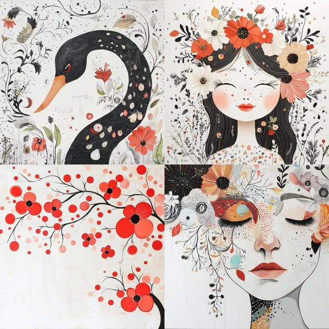 Стилизованные формы и декоративная красота проявляются в различных сферах — от иллюстраций моды до редакционного дизайна. Однако недостаток фотореализма может ограничивать эффективность этого стиля в реалистичных контекстах, а его сложность может не подойти для минималистичного дизайна.