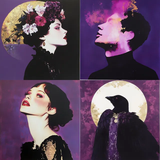 В этом стиле преобладает насыщенная фиолетовая палитра. Он сочетает в себе элегантность модерна и глубину символизма, создавая неземную и загадочную атмосферу. Золотые акценты и цветочные мотивы усиливают его роскошные и романтические качества, а использование силуэтов и драматического освещения придаёт ему завораживающий, сказочный характер.