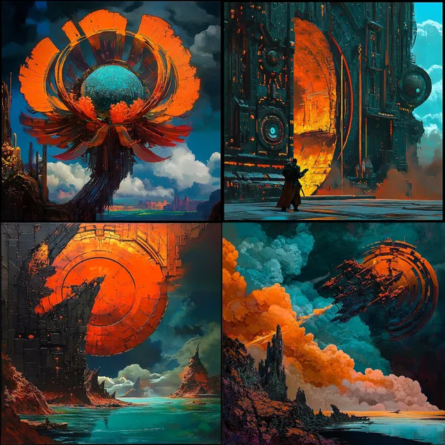 Стиль прекрасно подходит для изображения эпических научно-фантастических пейзажей и героических персонажей. На него повлияли киберпанк и футуризм. Однако акцент на смелых, сюрреалистичных элементах может ограничить его применение в фотореалистичных контекстах.