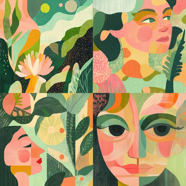 Этот стиль сочетает яркие, но в то же время спокойные краски. Органичные формы и пастельные оттенки создают причудливую, сказочную атмосферу. Текстурированные поверхности и многослойные композиции вызывают ощущение глубины и игривости, а упрощённые формы и природные тона поддерживают успокаивающий баланс.