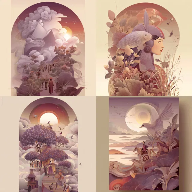Влияние стиля ар-нуво и символизма проявляется в элегантном балансе и замысловатых узорах. Этот стиль превосходно подходит для создания атмосферных и декоративных произведений искусства, но его нереалистичность может ограничить применение в более реалистичных контекстах.