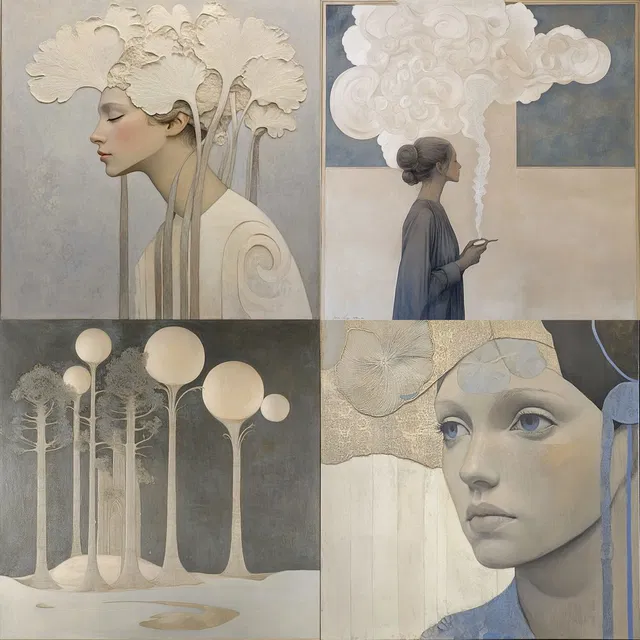 Эфирный сюрреализм завораживает своей сказочностью. Он сочетает приглушённые цвета и мягкое освещение, чтобы создать поэтичное визуальное повествование.