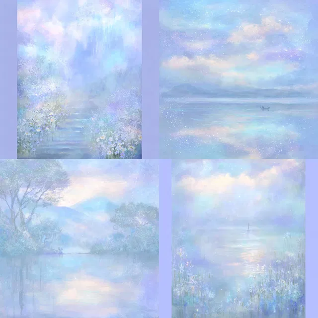 Этот стиль очаровывает своей мягкой пастельной палитрой и туманными наложениями, создавая нереальную, мистическую атмосферу. Он словно соткан из грёз. Нежные текстуры и тонкие градиенты усиливают чарующее впечатление, а плавные переходы и светлые тона вызывают чувство спокойствия и умиротворения.