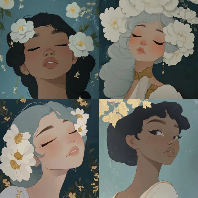 Этот стиль идеально подходит для модной иллюстрации, редакционного дизайна и концепт-арта. Он предлагает уникальное сочетание декоративной элегантности и творческого повествования.