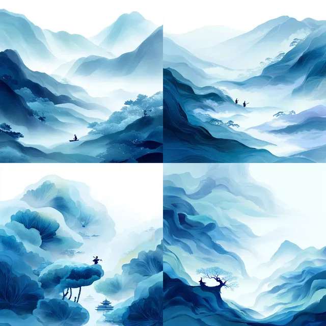 Этот стиль определяют эфемерные пейзажи и плавные формы. Для него характерна однотонная синяя палитра и плавные переходы оттенков. Мягкие текстуры и нежные изгибы усиливают сказочное качество, создавая безмятежные композиции, которые вызывают ощущение спокойствия.