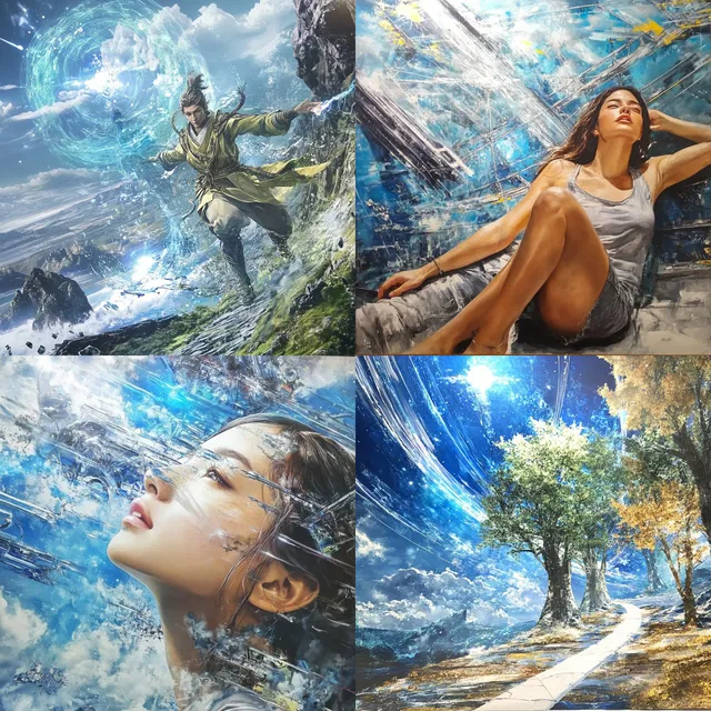Этот визуальный стиль отличается поразительным переплетением футуристических и фантастических элементов. Его характерные черты — яркая цветовая палитра и динамичные композиции. Использование светящихся бликов и отражающих поверхностей создаёт ощущение глубины и движения, а детальная проработка и богатство текстур усиливают визуальное повествование.
