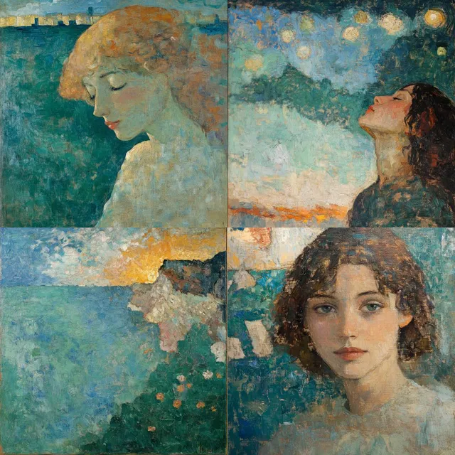 Эфирный импрессионизм сочетает приглушённые цвета и мягкое освещение, чтобы создать сказочные атмосферные образы. Этот стиль прекрасно передаёт романтические и ностальгические темы с помощью выразительной манеры письма и многослойных текстур. Импрессионистические корни стиля проявляются в его живописном подходе, часто вызывающем ощущение гармонии и неземной красоты.
