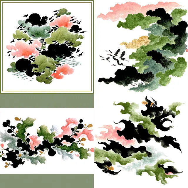 Это мастерское сочетание традиционной восточной эстетики. В этом стиле используются техники размывки тушью и акварели для создания воздушных композиций. Преобладают плавные мазки кистью и органические формы, а цветовая палитра состоит из пастельных оттенков и тонких тонов.