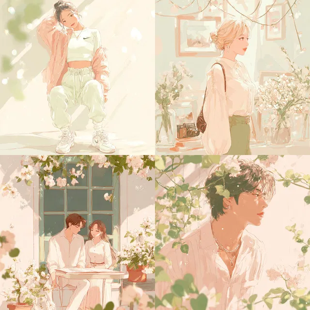 Импрессионистичный и воздушный стиль создаёт ощущение мечты с помощью пастельных тонов и мягкого освещения. Композиции получаются лёгкими и атмосферными, часто включают в себя природные формы и плавные переходы, которые создают безмятежную атмосферу.