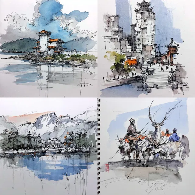 Выразительные линии и плавные мазки кисти определяют этот стиль, которому присущи набросочность и акварельная размытость. Свободные композиции и мягкие градиенты создают спокойную атмосферу, а тонкие контрасты и нежные текстуры добавляют глубины.