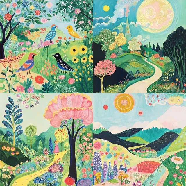 Этот стиль идеально подходит для детских книг и текстильного дизайна. Он превосходно смотрится в narrative art (повествовательном искусстве), но может не обладать фотореализмом в определённых контекстах. Его потенциал раскрывается в редакционном искусстве и модных принтах, предлагая уникальный взгляд на народные и наивные художественные традиции.