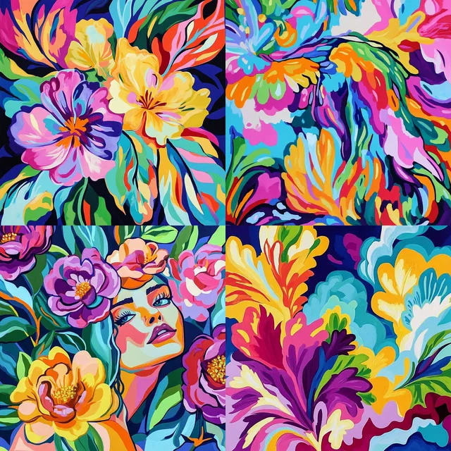 Этот стиль отличает взрывная палитра и динамичная композиция. Для него характерны яркие цвета и энергичные формы. Использование смелых, насыщенных тонов создаёт атмосферу веселья и радости, напоминая фовизм и поп-арт.