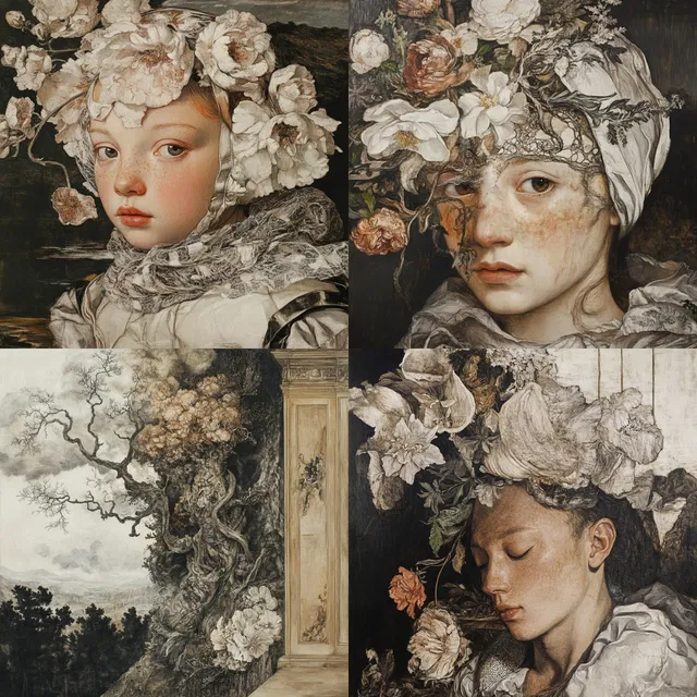 Этот стиль отличается сложными деталями и насыщенными текстурами, в нём сильно ощущается влияние эпохи Возрождения и барокко. Ботанические мотивы и исторические отсылки создают глубокую повествовательную линию, одновременно очаровательную и сложную.
