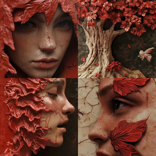 В этом стиле преобладает насыщенная, землистая палитра. Органические текстуры и скульптурные формы искусно вплетены в визуальное повествование. Многоуровневая сложность и трёхмерная глубина создают эффект погружения, напоминая элегантность модерна и естественную интеграцию, характерную для биофильного дизайна.