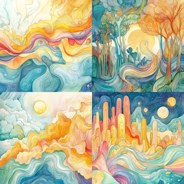 Этот стиль идеально подходит для фантастических и сюрреалистических тем. Он прекрасно смотрится в книжной иллюстрации, при разработке моделей одежды и в брендинге, предлагая уникальное визуальное повествование, одновременно игривое и утончённое.