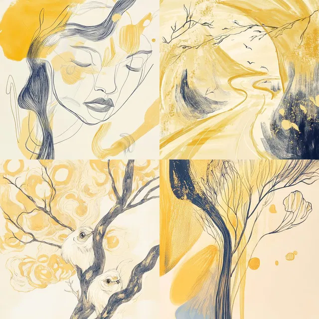 «Fluid Harmony» очаровывает выразительными линиями и динамичными мазками, создавая ощущение движения и жизни. Этот стиль отличается плавными формами и органичными очертаниями, напоминающими элегантность модерна. Он использует монохромную палитру с тонкими контрастами, что усиливает безмятежное и гармоничное настроение.