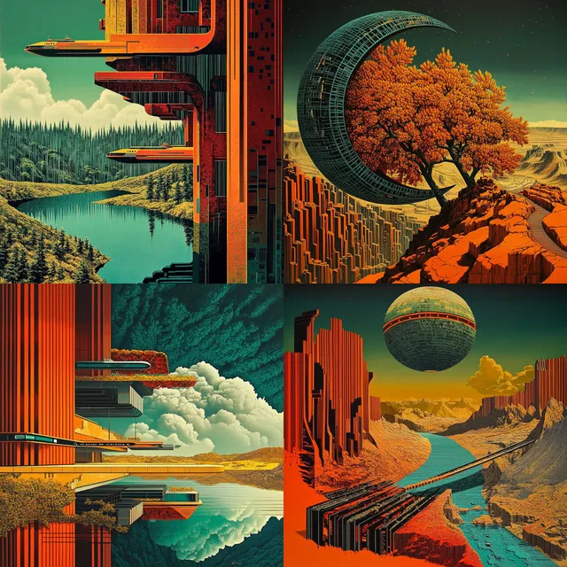 Стиль отлично подходит для изображения футуристических городов и научно-фантастических сюжетов, в которых органично сочетаются архитектурные и природные формы. Однако ему может не хватать фотореализма, особенно в спокойных пейзажах.