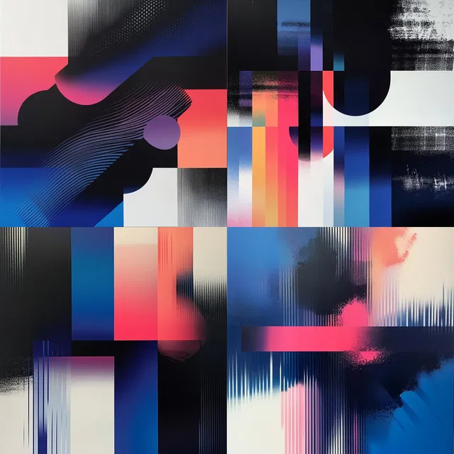Геометрическая неоновая абстракция завораживает смелым использованием ярких цветов и динамичных линейных узоров, создавая визуальную историю, которая колеблется между абстрактными формами и городскими пейзажами. Опора стиля на плавные градиенты и переходы добавляет глубины, а геометрическая абстракция вызывает эстетику модернизма, напоминающую Баухаус и оп-арт.