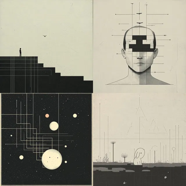 Монохромная палитра и тонкие текстуры этого стиля создают спокойную и созерцательную атмосферу, позволяя зрителю сосредоточиться на точности и балансе геометрических форм. Использование негативного пространства и симметрии усиливает минималистичный эстетический подход, черпая вдохновение в движениях Баухауса и конструктивизма.