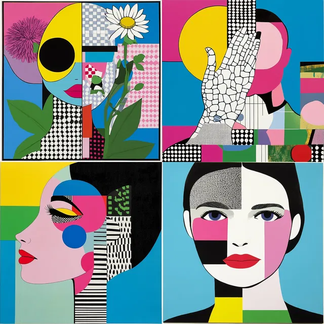 В этом стиле преобладают яркие геометрические формы, которые создают динамичное взаимодействие цвета и структуры. Смелые угловатые композиции вызывают ощущение игривой энергии, напоминая влияние поп-арта и баухауса.