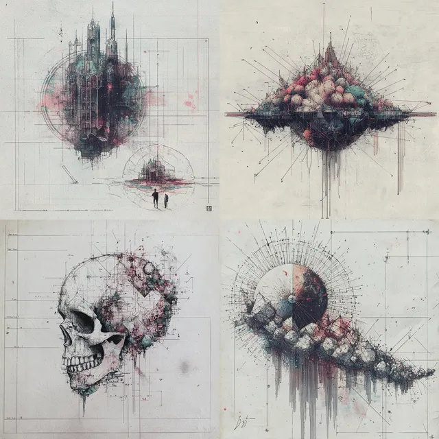 В основе лежит геометрическая абстракция: замысловатые линейные узоры и фактурные поверхности создают уникальный визуальный язык. Этот стиль особенно хорош для архитектурных и научных тем, предлагая модернистскую интерпретацию с нежными пастельными тонами. Хотя он точно передаёт абстрактные и футуристические концепции, в некоторых контекстах ему может не хватать фотореализма. Идеален для редакционного дизайна и концепт-арта, прекрасно подходит для приложений, где требуется сочетание абстракции и детализации.