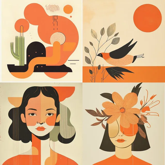 Этот стиль идеально подходит для редакционных, брендинговых и художественных проектов. Он предлагает уникальное сочетание современности и ретро-шарma, хотя может испытывать трудности с более сложными или детализированными изображениями.