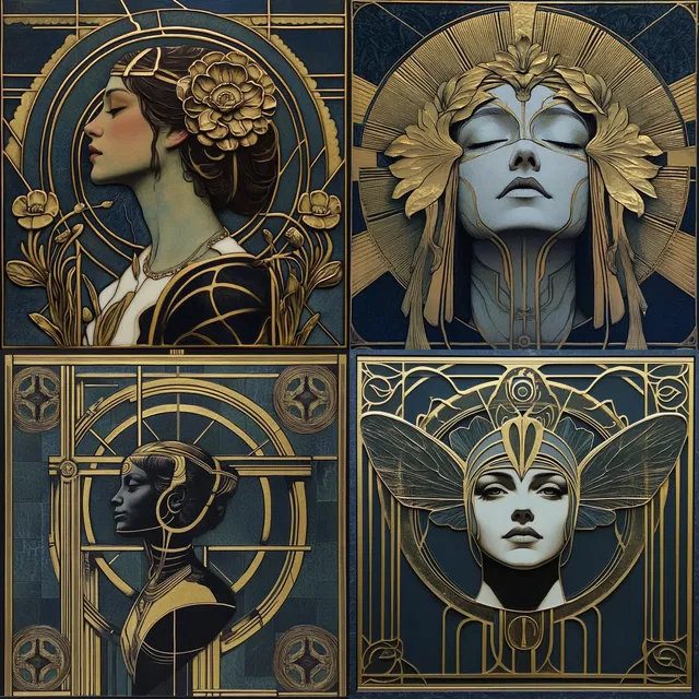 Этот стиль отличается богатством и замысловатостью. Он сочетает в себе элегантность модерна и утончённость ар-деко, создавая визуальную симфонию золотистых оттенков и насыщенных текстур. Многослойные композиции и детальная проработка вызывают ощущение вечной роскоши, а использование геометрической симметрии и декоративных мотивов добавляет структурированный баланс.
