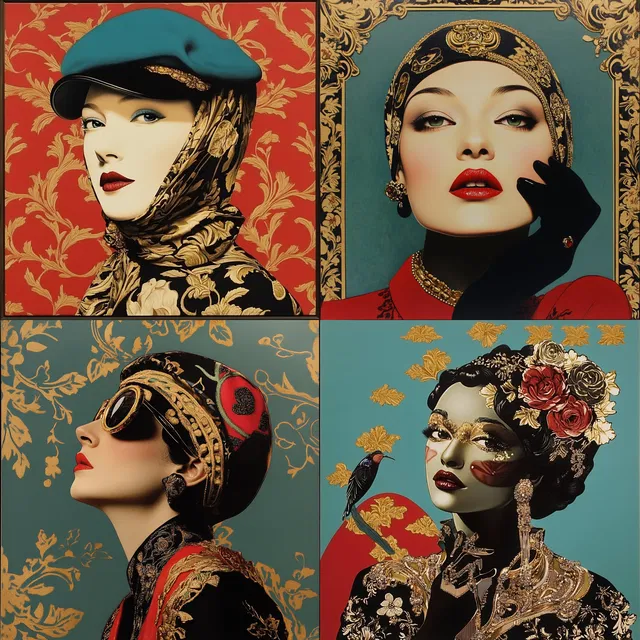 Яркая и насыщенная цветовая палитра усиливает драматизм и театральность. Хотя стиль превосходно подходит для создания роскошных декоративных изображений, ему может не хватать утончённости в более минималистичных или фотореалистичных контекстах.