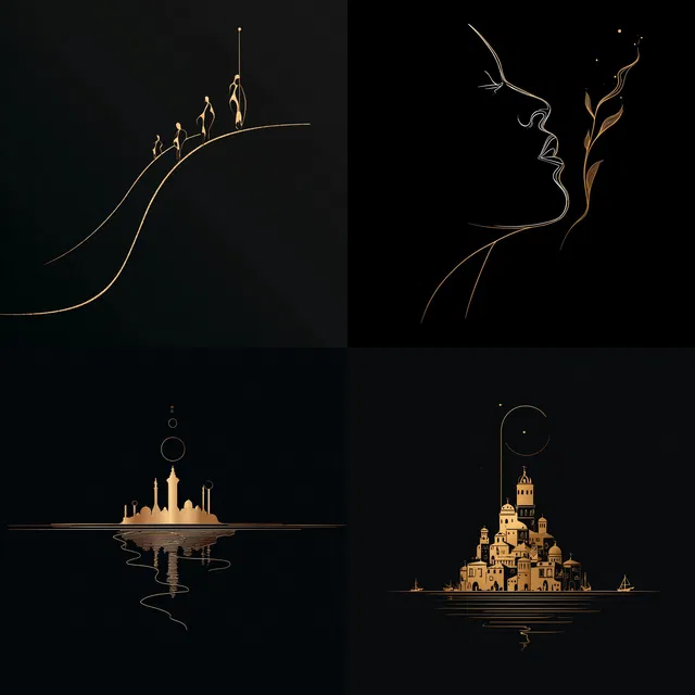 Изысканное использование золота на чёрном создаёт поразительный визуальный контраст, подчёркивая элегантность минимализма и утончённость линий. Стиль отличается способностью передавать ощущение тайны и изысканности через силуэт и контур, черпая вдохновение из ар-нуво и символизма.