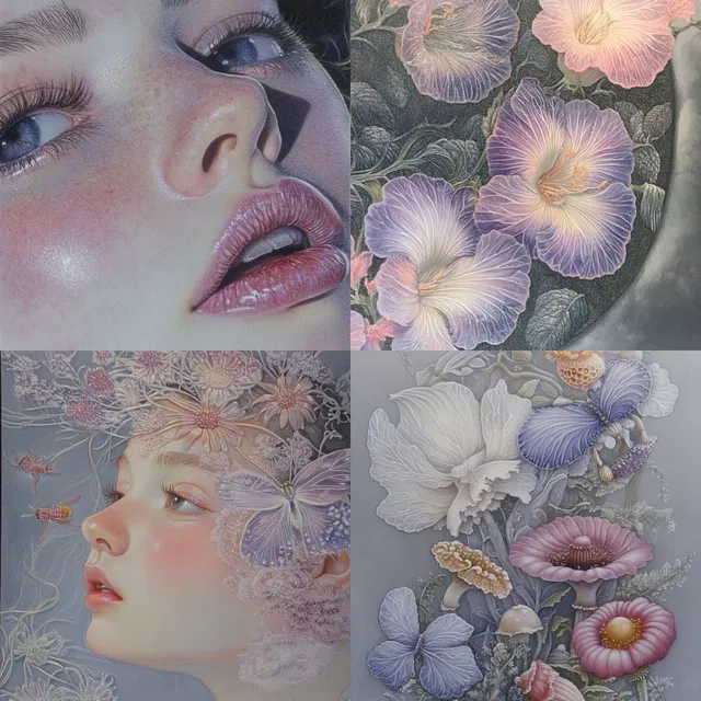 Этот стиль определяют воздушность прорисовки и пастельная палитра, в которых переплетаются влияние ар-нуво и современные цифровые техники. Мягкие переходы и плавные градиенты создают атмосферу мечты, а замысловатые растительные мотивы и органические формы вызывают ощущение неземной красоты.