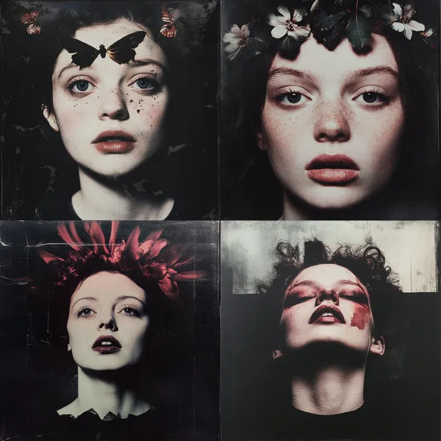 Он отлично подходит для редакционного дизайна, концепт-арта и модной фотографии, предлагая уникальное визуальное повествование, которое одновременно завораживает и тревожит.