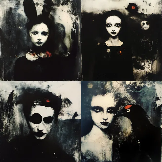 Тёмный сюрреализм преобладает за счёт теневых контрастов и навязчивых текстур, создавая жуткую атмосферу в различных темах. Готическое влияние проявляется в эфемерных лицах и антиутопических силуэтах, а игра света и тени усиливает загадочную атмосферу. Этот стиль отлично подходит для создания сюжетов в жанре тёмного фэнтези и хоррора, но испытывает сложности с фотореализмом, особенно в спокойных сценах. Его монохромная палитра и готические мотивы делают его идеальным для создания историй с прививкой сверхъестественного и таинственного искусства, хотя он может не подойти для ярких или реалистичных изображений.