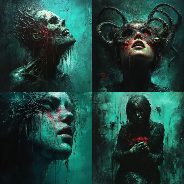 Каждая композиция — это мастер-класс по многослойной сложности, берущей начало в глубинах антиутопических тем и мифологических сюжетов. Стиль прекрасно подходит для создания мрачных, сюрреалистичных сцен, но его отклонение от фотореализма в некоторых контекстах может ограничить применение в традиционных условиях.