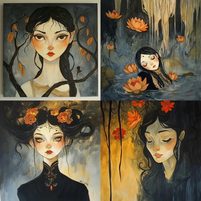 Этот стиль отличается насыщенной текстурой и глубокой атмосферой. В нём сочетаются элементы готики и фэнтези с причудливыми нотками. Его визуальный язык определяют приглушённые цвета и мягкое освещение, создающие неземное, сказочное качество.