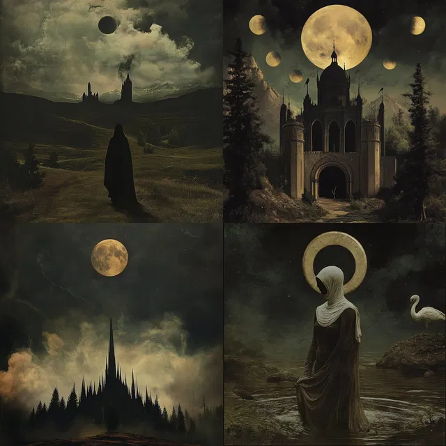 Атмосферная глубина и загадочное повествование определяют этот стиль, который характеризуется мрачным романтизмом и мистической атмосферой. Готическое влияние проявляется через игру теней и сцены при лунном свете, создавая призрачное, но захватывающее визуальное повествование.