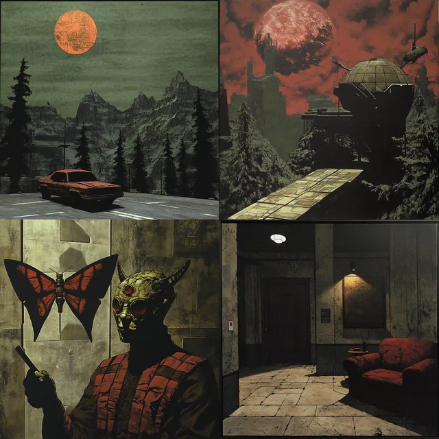 Визуальный стиль, который характеризуется текстурированным реализмом и атмосферной глубиной. В нём сочетаются элементы антиутопии и футуризма с жёсткой индустриальной эстетикой. В композициях часто можно увидеть монолитные структуры и фигуры в броне на фоне приглушённых цветовых палитр, которые создают мрачное, жуткое настроение.