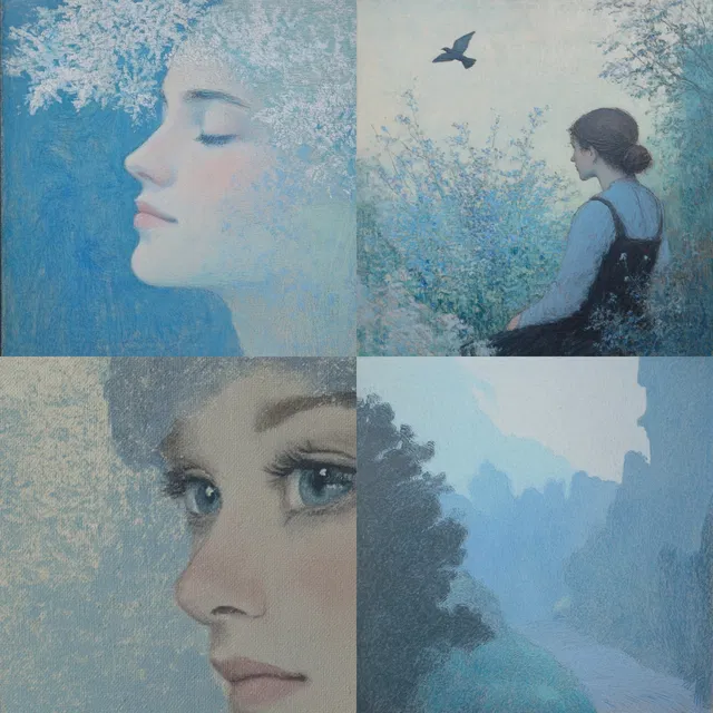 Этот стиль превосходно передаёт тихие моменты и сдержанную красоту, что делает его идеальным для использования в редакционном дизайне, на обложках книг и в художественных репродукциях. Однако его зависимость от единой цветовой схемы может ограничивать универсальность в более ярких или динамичных контекстах. Хотя он прекрасно передаёт безмятежную атмосферу, ему может быть сложно справиться с более сложными или фотореалистичными требованиями, предлагая уникальное, но нишевое художественное выражение.