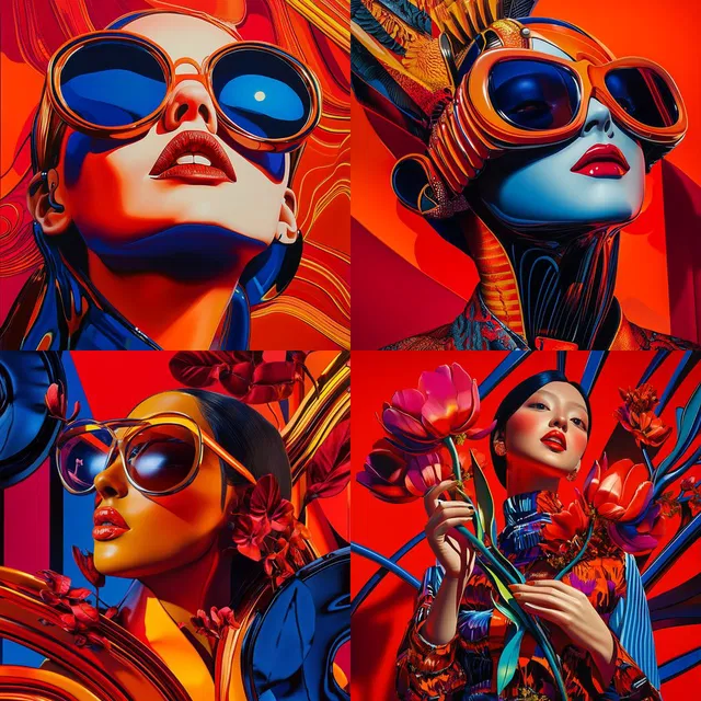 Этот стиль поражает яркими неоновыми цветами и высокой контрастностью. Он воплощает футуристическую эстетику, которая одновременно динамична и энергична. Композиции смелые, с изящным, структурированным дизайном, который вызывает ощущение современности и инноваций.