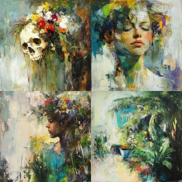 Цветовая палитра сочная и яркая, что усиливает эфемерность композиций. Хотя стиль визуально привлекателен, ему может не хватать точности в фотореалистичных контекстах, вместо этого предлагая более абстрактную интерпретацию.