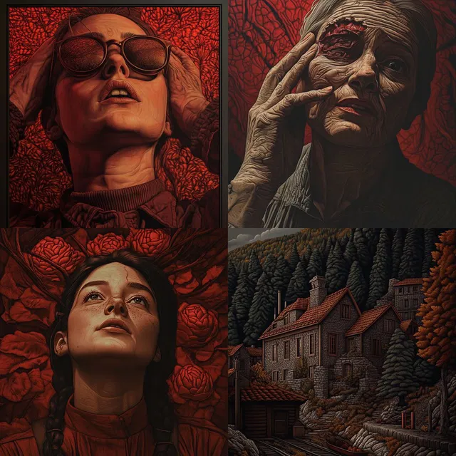 Замысловатый экспрессионизм очаровывает своей сложной орнаментацией и насыщенными текстурами, создавая визуальную историю, которая одновременно погружает в себя и вызывает эмоции.