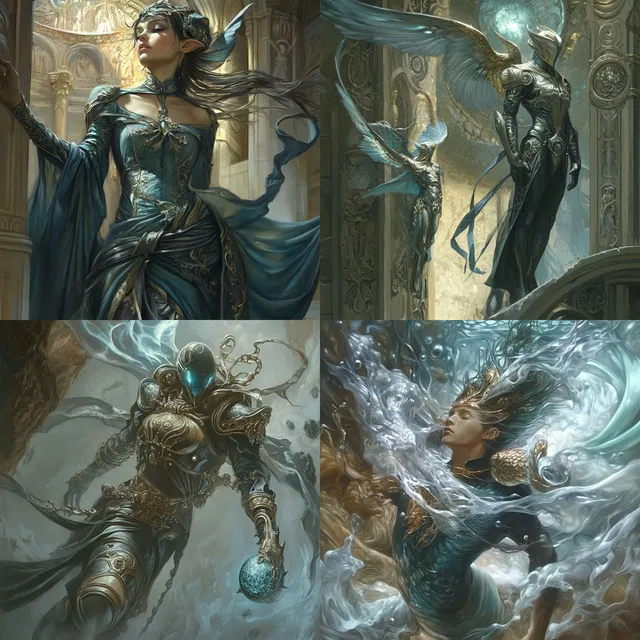 Этот стиль отлично подходит для изображения фантазийных и мифических сюжетов, демонстрируя зачарованные пейзажи и царственных персонажей с чувством величия и торжественности.