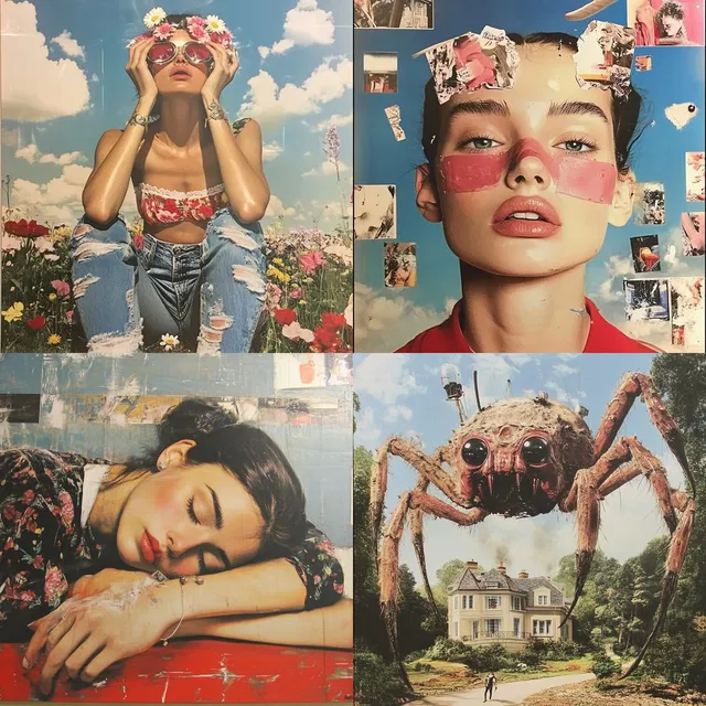 Этот стиль отличается ярким реализмом и сюрреалистичными сопоставлениями, в которых реалистичные изображения сочетаются с необычными комбинациями. Динамичные композиции и энергичные макеты создают поразительный визуальный эффект, напоминающий поп-арт и современный сюрреализм.
