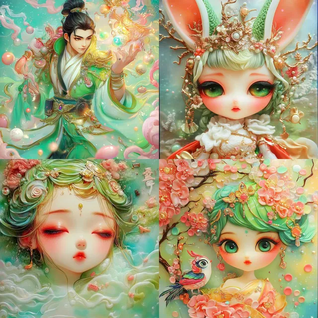 Этот стиль отличается яркими пастельными оттенками и причудливым шармом. В нём сочетаются эстетика каваии и замысловатые детали. Мягкое освещение и нежные выражения лиц создают неземную атмосферу, а игривые композиции и жизнерадостные сюжеты усиливают его чарующее очарование.