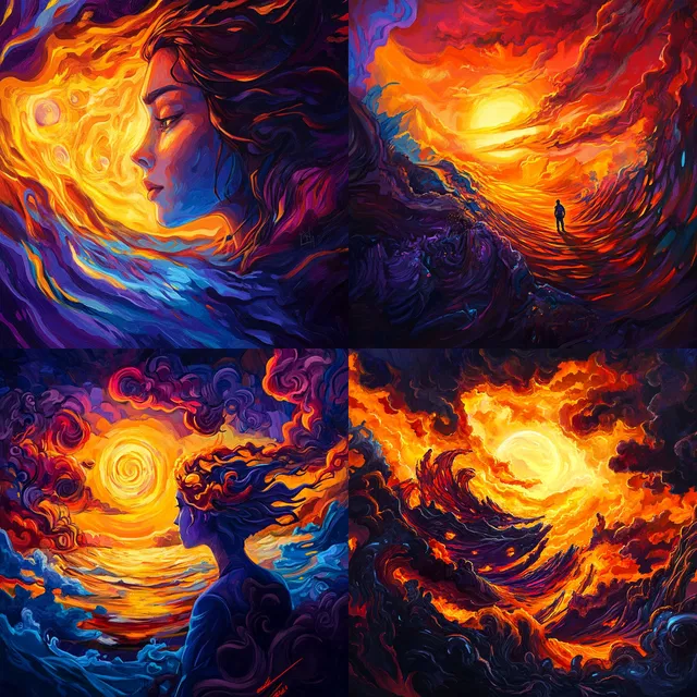 Этот стиль отличается яркой выразительностью. Он очаровывает своими вихревыми формами и насыщенной палитрой цветов, напоминая эмоциональную манеру письма Ван Гога и орнаментальную детализацию Климта. Динамичные композиции и смелые контрасты создают ощущение движения и энергии, производя сильное визуальное впечатление.