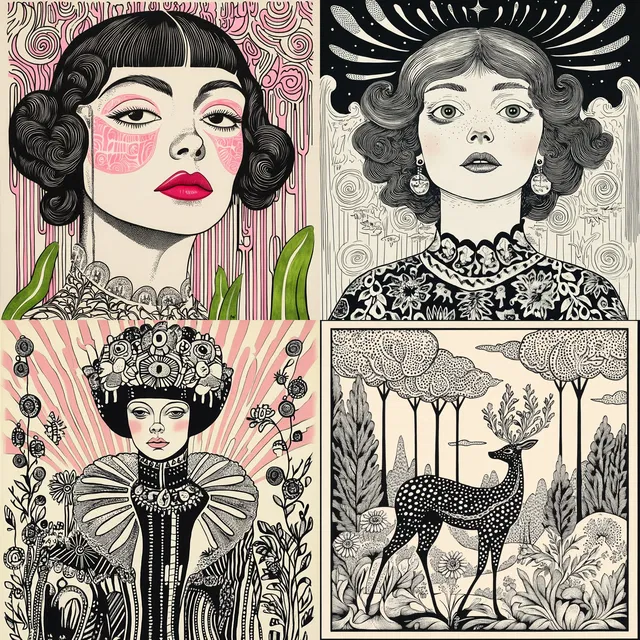 Этот стиль прекрасно подходит для декоративных и иллюстративных целей, создавая причудливую, сказочную атмосферу, которая одновременно очаровательна и фантастична. Однако ему может не хватать глубины в фотореалистичных контекстах, а его сложность может перегрузить минималистичные дизайны.