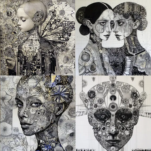 Этот стиль отличается сложными деталями и витиеватыми узорами, которые сплетаются в замысловатые композиции на разнообразные темы. Преобладают монохромные палитры, создающие изысканную чёрно-белую эстетику, напоминающую модерн и византийские мотивы.