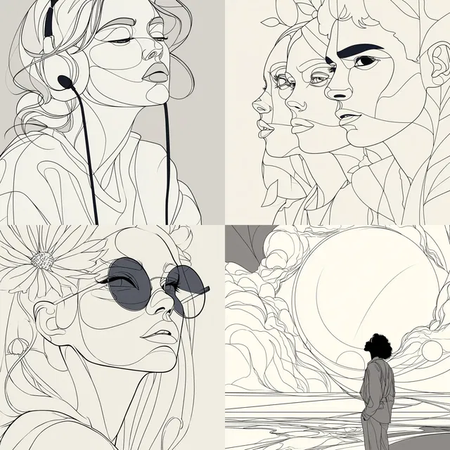 Этот стиль отличается линейной элегантностью. Он делает акцент на контуре и очертаниях, создавая яркий визуальный язык для разных тем.