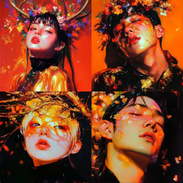 Люминисцентный сюрреализм очаровывает своей яркой палитрой и выразительными портретами. В этом стиле мечтательная абстракция сочетается с неземной мистикой. Он отличается динамичными композициями и гибкими макетами, часто включает сложные узоры и гармоничный баланс.