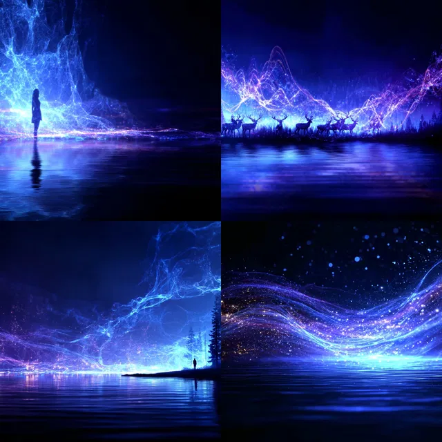 В этом стиле царит светящееся искусство, для которого характерны неземное сияние и яркие эффекты. Манипуляции со светом создают сюрреалистичную атмосферу: голографические текстуры и мерцающие детали усиливают визуальное повествование.